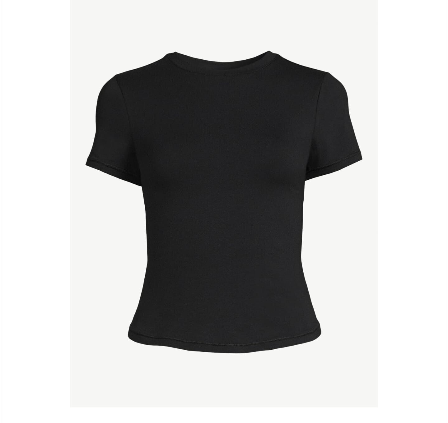 It has a round neck and short sleeves,