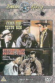 Double bill of Westerns based on novels by Zane Grey. 'Under the Tonto Rim' (1947) is the story of two stagecoach operators who try to track down a gang of highway robbers. 'Sunset Pass' (1946) stars James Warren as Rocky, a young outlaw who is given the job of stopping a train robbery gang working in Arizona. Please note this DVD is region 2 and will only work in the following regions Japan, Europe, South Africa, the Middle East (including Egypt) and Greenland, Unless you have a multi-regional DVD Player.