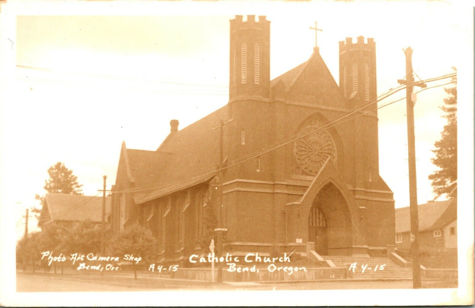RPPC Sepia Bend Oregon OR Catholic Church UNP A4-15 Postcard