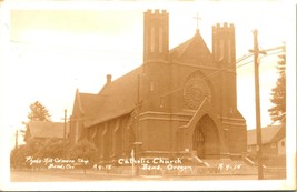 Vtg Postcard RPPC 1940s Sepia Bend Oregon OR Catholic Church UNP A4-15