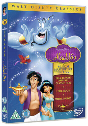 'Musical Masterpiece' edition of the classic animated Disney film, allowing you to sing along to five songs from the movie. Aladdin (voice of Scott Weinger), a street urchin with a pet monkey called Abu (voice of Frank Welker), one day meets the beautiful Princess Jasmine (voice of Linda Larkin) by chance in the marketplace after she has sneaked out of the royal palace looking for some fun. The sultan's advisor, the evil Jafar (voice of Jonathan Freeman), who is hatching an evil plot to marry Jasmine and become sultan himself, senses her attraction to the youth and immediately gives orders to throw Aladdin in jail. But when Aladdin discovers a magic lamp in a cave, his quest begins to defeat Jafar and win the hand of the princess, with the help of the Genie in the lamp (voice of Robin Williams). Please note this DVD is region 2 and will only work in the following regions Japan, Europe, South Africa, the Middle East (including Egypt) and Greenland, Unless you have a multi-regional DVD Player.