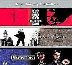 Triple bill of thrillers featuring Sean Connery. In 'The Hunt for Red October' (1990), Soviet submarine captain Marko Ramius (Connery) decides to break away from the military exercises in which he has been ordered to take part and sets a course straight for the American coastline. The Americans believe he is mounting a renegade attack, the Russians believe he is trying to defect, and both nations send their Navies out in pursuit. The one man who seems to have a clear grasp on the situation is C.I.A. analyst Jack Ryan (Alec Baldwin) - but can he make the superpowers see sense before they risk everything in a potential catastrophic naval encounter? In 'The Untouchables' (1987), Eliot Ness (Kevin Costner), an idealistic Treasury official who vows to bring an end to Al Capone's (Robert De Niro) corrupt hold over Prohibition-era Chicago. To this end, Ness puts together an elite team of law-enforcement officers (played by Connery, Andy Garcia and Charles Martin Smith), and begins making bold strikes at Capone's bootlegging operation. Nevertheless, Capone's empire continues to thrive, and Ness realises that he must try a different approach. Brian De Palma directs, from a David Mamet screenplay, and Connery won a Best Supporting Actor Oscar for his efforts. In 'The Presidio' (1988), detective Jay Austin (Mark Harmon) team ups with his old enemy Lt. Col. Caldwell (Connery) to investigate a murder that has been committed on a San Francisco military base. Caldwell's daughter (Meg Ryan) enjoys the antagonism between the two, and causes trouble by flirting with Austin. But all personal tensions must be put aside when the two cops realise the killing was part of a larger conspiracy... Please note this DVD is region 2 and will only work in the following regions Japan, Europe, South Africa, the Middle East (including Egypt) and Greenland, Unless you have a multi-regional DVD Player.