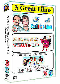 Comedy drama triple. In 'Cadillac Man' (1989), fast-talking car salesman Joey O'Brien (Robin Williams) has a lot on his plate. His job at Turgeon Auto Sales is on the line, his ex-wife wants her alimony, and he is two-timing his girlfriend with a married woman. Things go from bad to worse when the latter's neanderthal husband, Larry (Tim Robbins), arrives at Joey's showrooms, armed with a shotgun and looking for whoever has been 'doing' his spouse. A hostage scenario ensues, with Joey doing what he does best - lie - in order to save his hide. Gene Wilder stars in 'The Woman in Red' (1984) as Teddy Pierce, a happily married executive who goes crazy over Charlotte (Kelly LeBrock) when he sees her dancing the Cha-Cha Monroe-style. He enlists the help of his friends in a bid to bed the beautiful vision, but is constantly and comically frustrated at every turn. Written and directed by Wilder, the film also features Stevie Wonder's Oscar-winning song 'I Just Called To Say I Love You'. The ups and downs of life in L.A. are examined in 'Grand Canyon' by Lawrence Kasdan, director of 'Body Heat' and 'The Big Chill'. When Los Angeles attorney Mack (Kevin Kline)'s car breaks down in Inglewood, he is threatened by a gang of hoods. Rescue comes in the form of black tow truck driver Simon (Danny Glover), who convinces the gang to lay off. A friendship forms between the two men, as they and their families struggle to get by in an increasingly violent and haphazard world. Please note this DVD is region 2 and will only work in the following regions Japan, Europe, South Africa, the Middle East (including Egypt) and Greenland, Unless you have a multi-regional DVD Player.