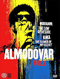 Four of director Pedro Almodovar's acclaimed films. In 'The Flower of My Secret' (1995), a woman who lives a double life finds that being a successful romantic novelist does not necessarily bring happiness. Her husband does not love her, her best friend seems distracted and her mother and sister are too busy bickering to notice that anything is wrong. She stops writing and finds solace in the bottle but finds an unlikely rescuer putting her on a collision course to a new emotional entanglement. 'Kika' (1993) is a black comedy about a make-up artist and her relationship with a philandering American writer living in Madrid. Features the usual roster of Almodovar comic stalwarts such as a rapist-thief, a narcoleptic son, a roving camerawoman voyeur, a lesbian housemaid and various transexuals, serial killers, porn stars and drug addicts - all whisked up into a gloriously immoral frothy sex comedy. In 'Law of Desire' (1987), Antonio Banderas stars as the obsessive fan of gay director Pablo Quintero (Eusebio Poncela). Carmen Maura also stars as the director's lesbian sex-changed brother in this sex, drugs and murder romp through modern Madrid. Finally, in 'Matador' (1986), Diego (Nacho Martinez) is an ex-champion bullfighter who has retired early and now runs a bullfighting school; still looking to find a 'kick', he has taken to watching sadistic videos for sexual pleasure. Maria Cardenal (Assumpta Serna) is a lawyer and Diego's number one fan; she also likes to kill men with a hairpin at the point of orgasm. The pair are destined to meet. Please note this DVD is region 2 and will only work in the following regions Japan, Europe, South Africa, the Middle East (including Egypt) and Greenland, Unless you have a multi-regional DVD Player.