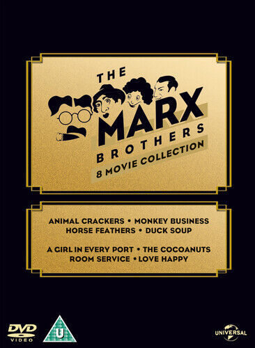 A collection of 8 classic Marx Brothers films. 'The Cocoanuts' (1929) sees the four Marx brothers - Groucho, Harpo, Chico and Zeppo - make their big screen debut with this adaptation of their Broadway hit; 'Animal Crackers' (1930) also stars Margaret Dumont; 'Monkey Business' (1931) was their first original screenplay and features them as stowaways aboard a luxury ocean liner; 'Horse Feathers' (1932) sees them creating havoc on the campus of a high school college; 'Duck Soup' (1933) is a zany political satire, which so offended Fascist dictator Benito Mussolini that the film was banned in Italy; 'Room Service' (1938) also starred Lucille Ball and Ann Miller; 'Love Happy' (1949) featured an aspiring starlet, Marilyn Monroe; and 'A Girl in Every Port' (1952) was Groucho Marx's second solo outing for RKO and his third feature without Chico and Harpo. Please note this DVD is region 2 and will only work in the following regions Japan, Europe, South Africa, the Middle East (including Egypt) and Greenland, Unless you have a multi-regional DVD Player.