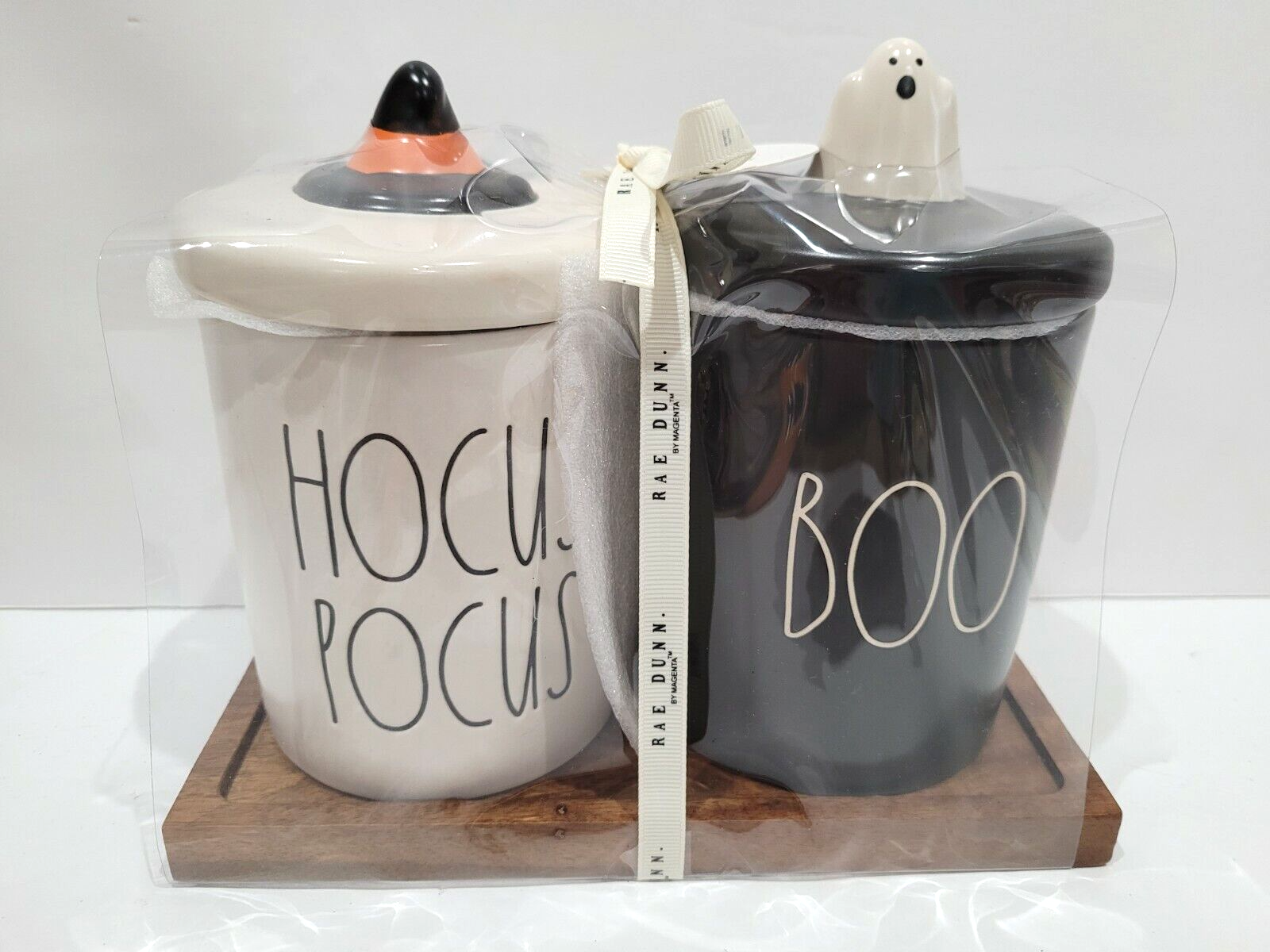 RAE DUNN Halloween "HOCUS POCUS" & “BOO” Ghost & Witch Hat Canister Set New