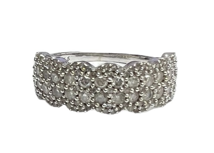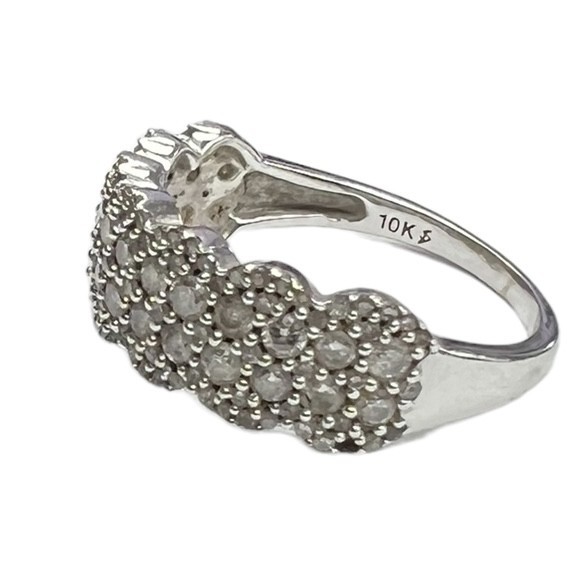 Type: Cluster ringWeight: 2.1Karat: 10ktMetal: White GoldGender: UnisexStyle: ClusterSize / Length: 7.5Owner applied: 10KStone 1 quantity: 28Stone 1 shape: RoundStone 1 color: ClearStone 1 weight (total): .30Brand: DiamondWidth: 108Thickness: RoundStone 1 type: ClearStone 2 Quantity: 0.54Stone 2 Shape: DiamondCondition:Used