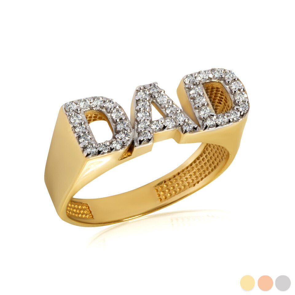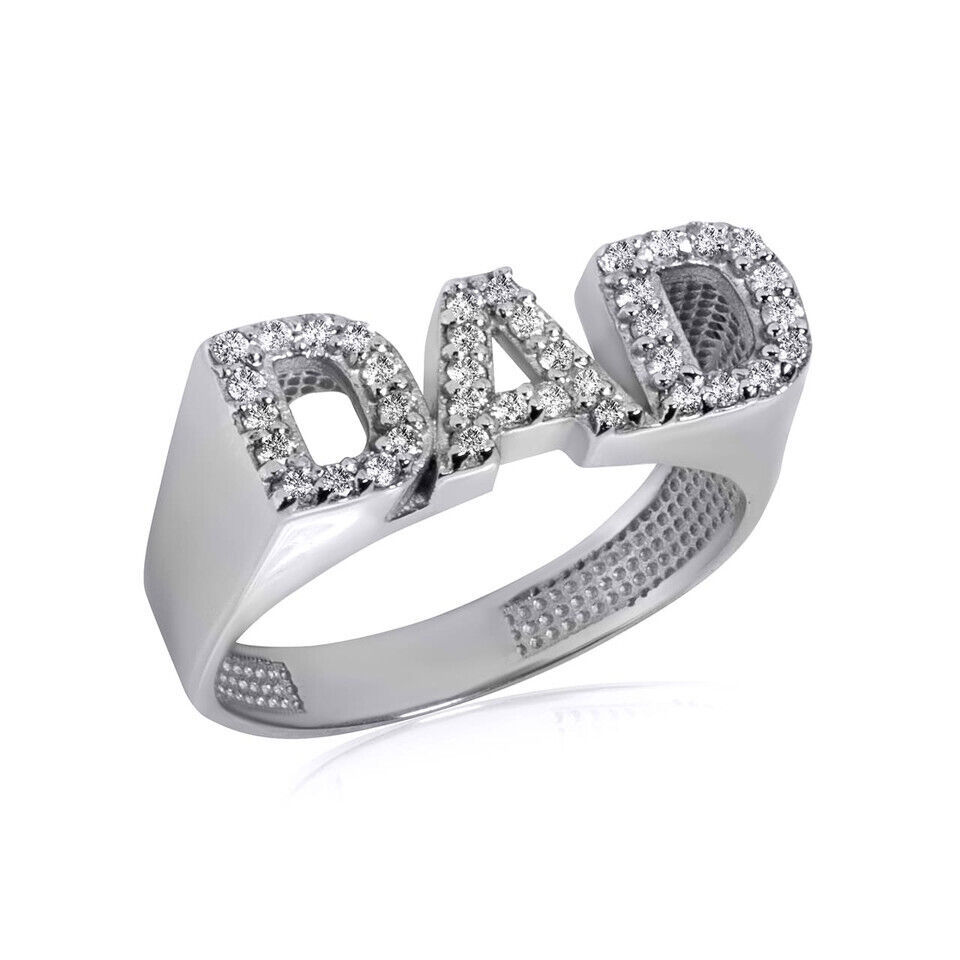 Celebrate the irreplaceable role of a father with our CZ Dad Father's Ring. This ring features the word "Dad" elegantly crafted in cubic zirconia stones, creating a meaningful and stylish tribute to paternal love and support. The sparkling accents add a touch of brilliance, symbolizing the special bond between a father and their child. Crafted with meticulous attention to detail, this ring serves as a heartfelt reminder of the enduring connection between a father and their family. It's a beautiful and meaningful accessory for fathers who want to carry their love close to their heart.