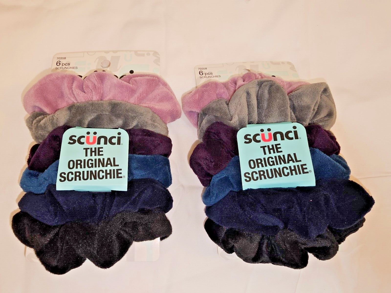 Scunci scrunchies. 2 packs. Each pack has 6 scrunchies for a total of 12 scrunchies. Brand new. Not for children under 3 years due to choking hazard.