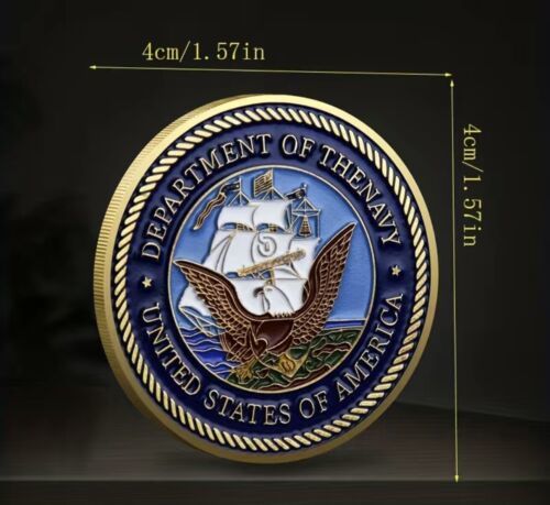 This is a great looking US NAVY - USS Theodore Roosevelt CVN-71 commemorative challenge coin. Coin has reeded edges and is about 1 9/16" in diameter. All details are raised lettering and gold plated. Coin is contained in an acrylic air tight holder.