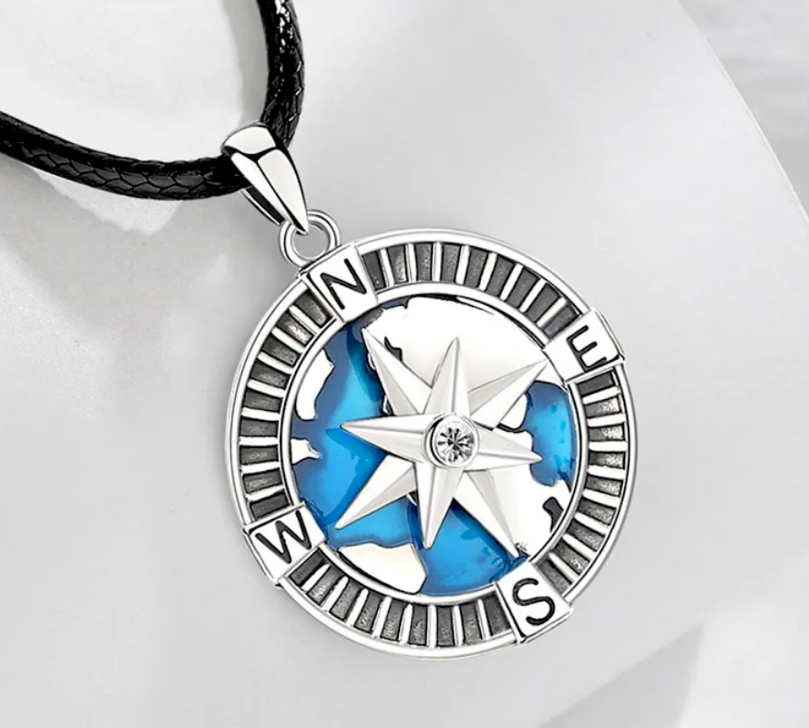 Exquisite 925 Sterling Silver Rotational North Star Enamel Compass Pendant