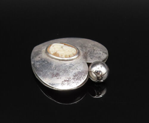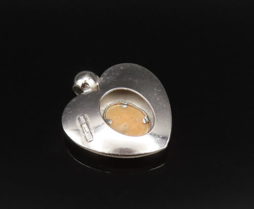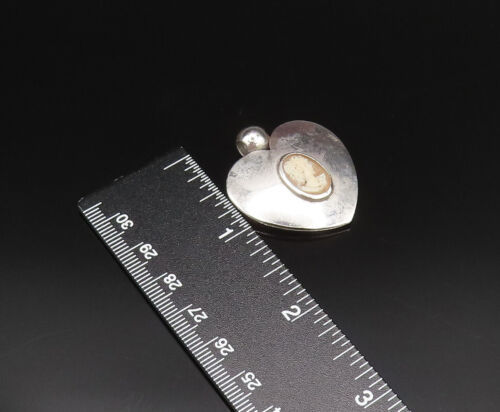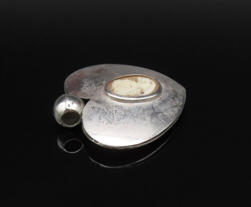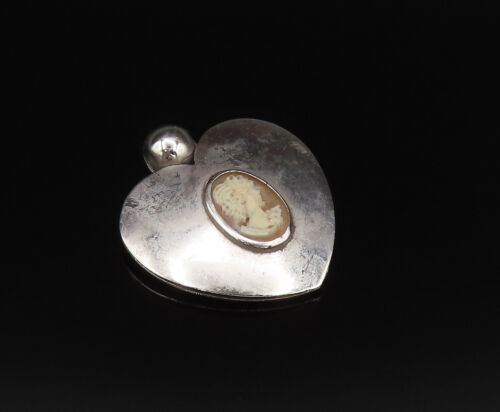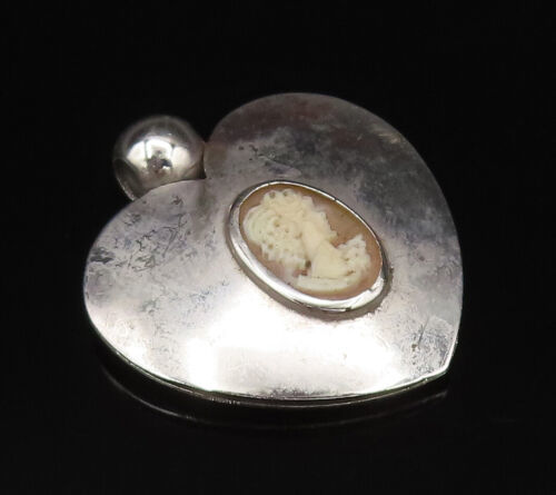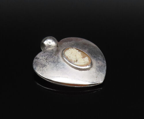 925 Silver - Vintage Polished Love Heart & Carved Lady Cameo Pendant - PT21441