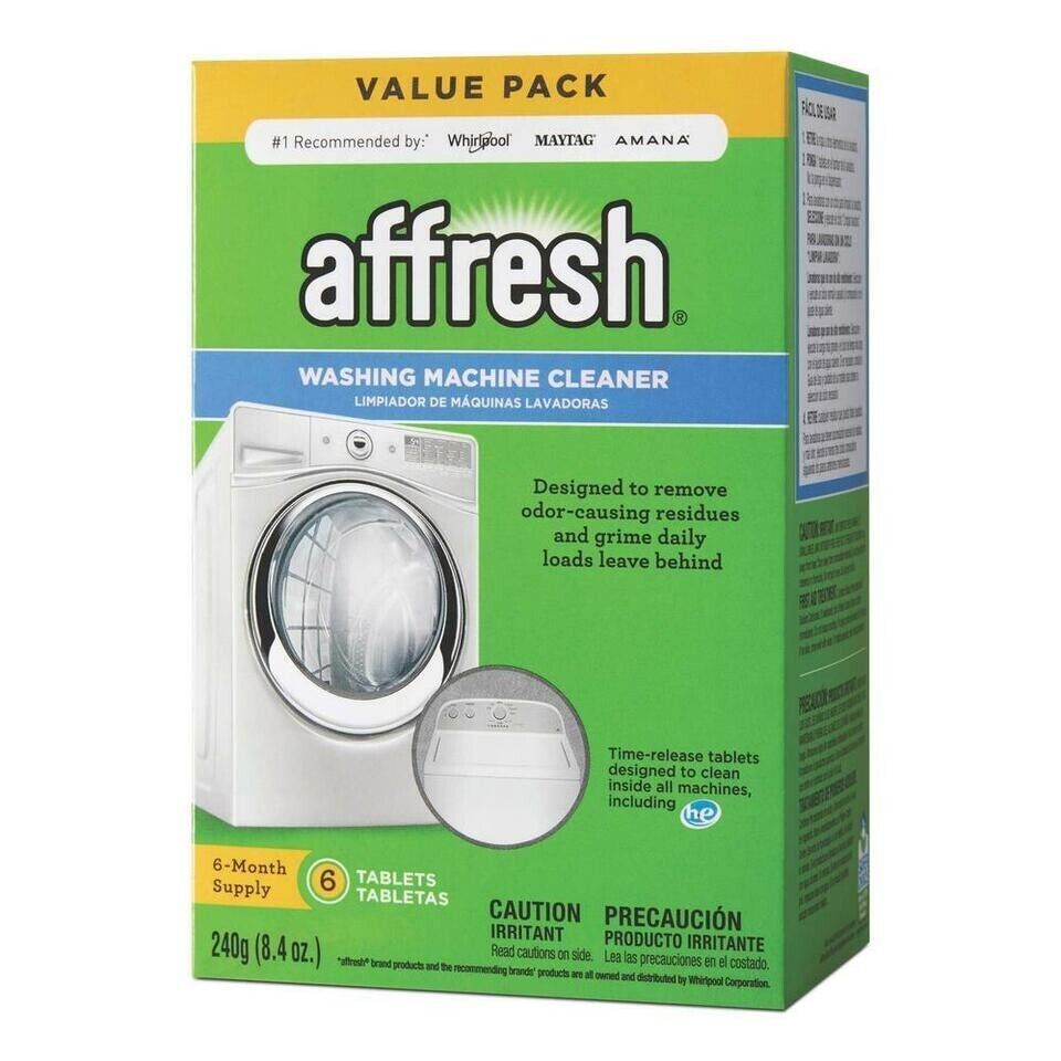 The Affresh Washer Cleaner 6-Pack is an OEM product designed by Whirlpool to help maintain the cleanliness and efficiency of your washing machine. This cleaner is specifically formulated to penetrate, dissolve, and remove odor-causing residue that can accumulate in all washing machines. Using these tablets once a month ensures that your washing machine stays fresh and clean, enhancing its performance and extending its lifespan.