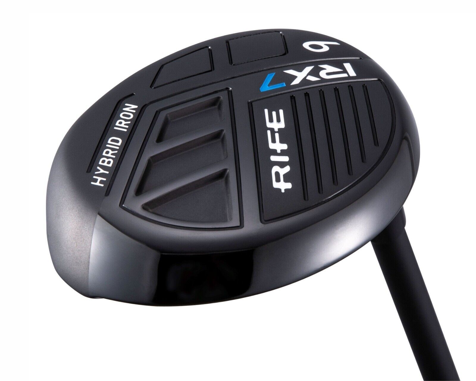 Rife RX7 All True Hybrid Utility Irons offer benefits like increased forgiveness, easier launch, and better performance on off center shots. RX7 new engineered design combines elements of both irons and fairway woods, providing a larger clubhead with a lower center of gravity. This fusion results in improved playability, especially for golfers who struggle with traditional size irons. If you're having trouble with your current Irons and you're looking for a long term viable solution, Hybrid irons are known for helping players launch the ball higher and more consistently than traditional irons and also offers a more forgiving option for all the various lies on the course.