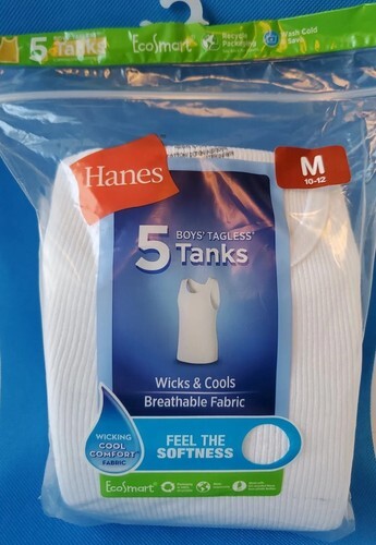 Hanes Boys' Tagless White Tank Top, Pack of 5, Size Small 6-8
