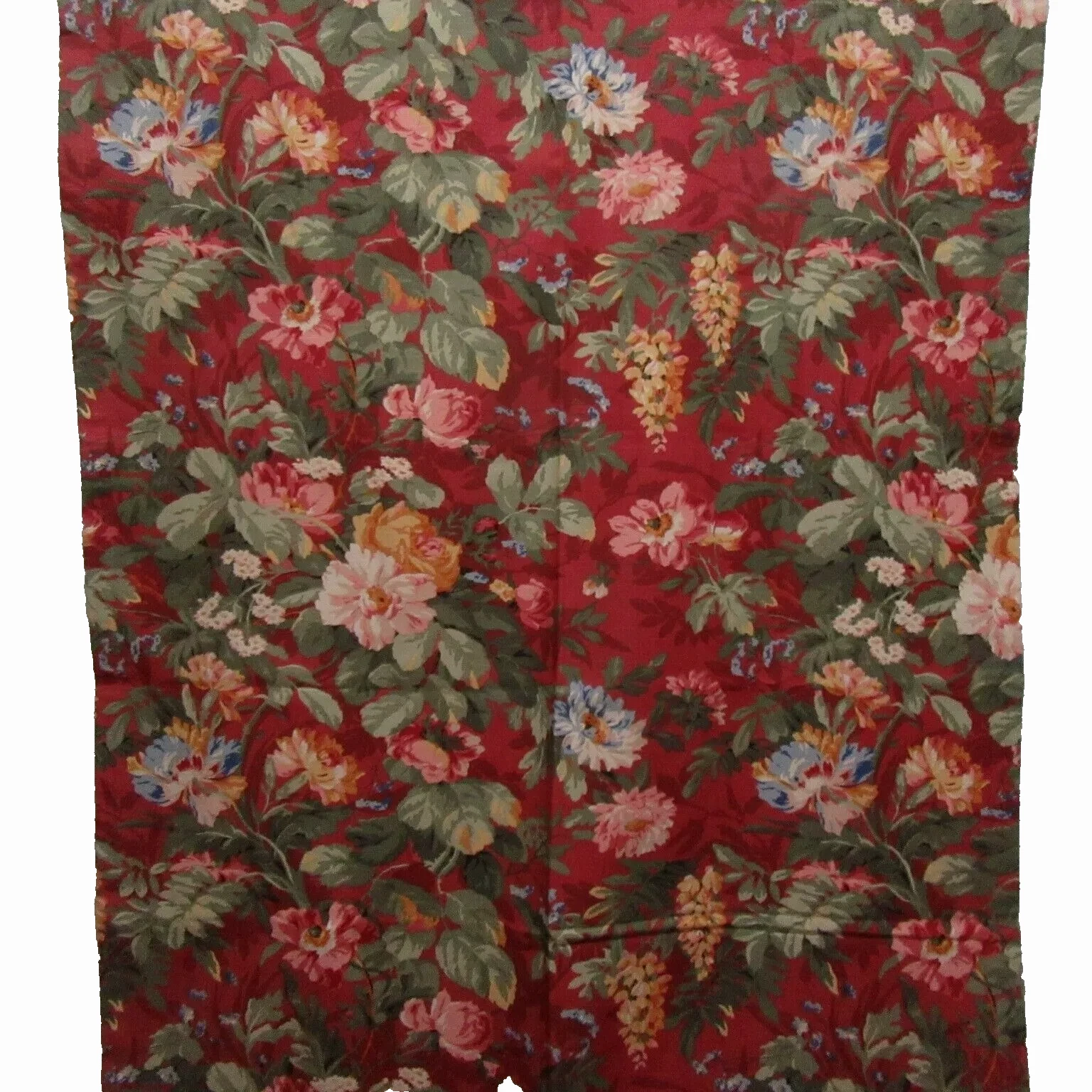 Garden floral designs in multi colors, on a crimson red background; fully lined.