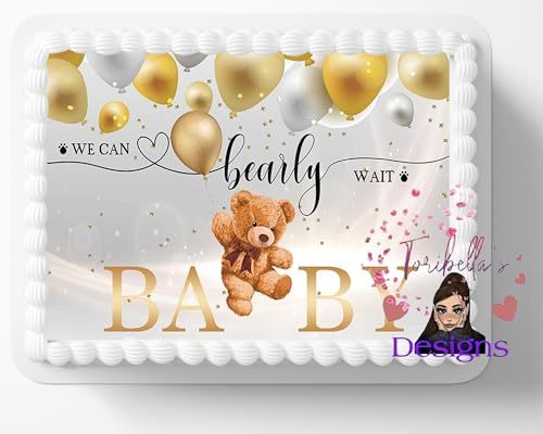 Barely Bearly Wait Gold Teddy Bear Theme Edible Image Baby Shower Cake Topper Fr