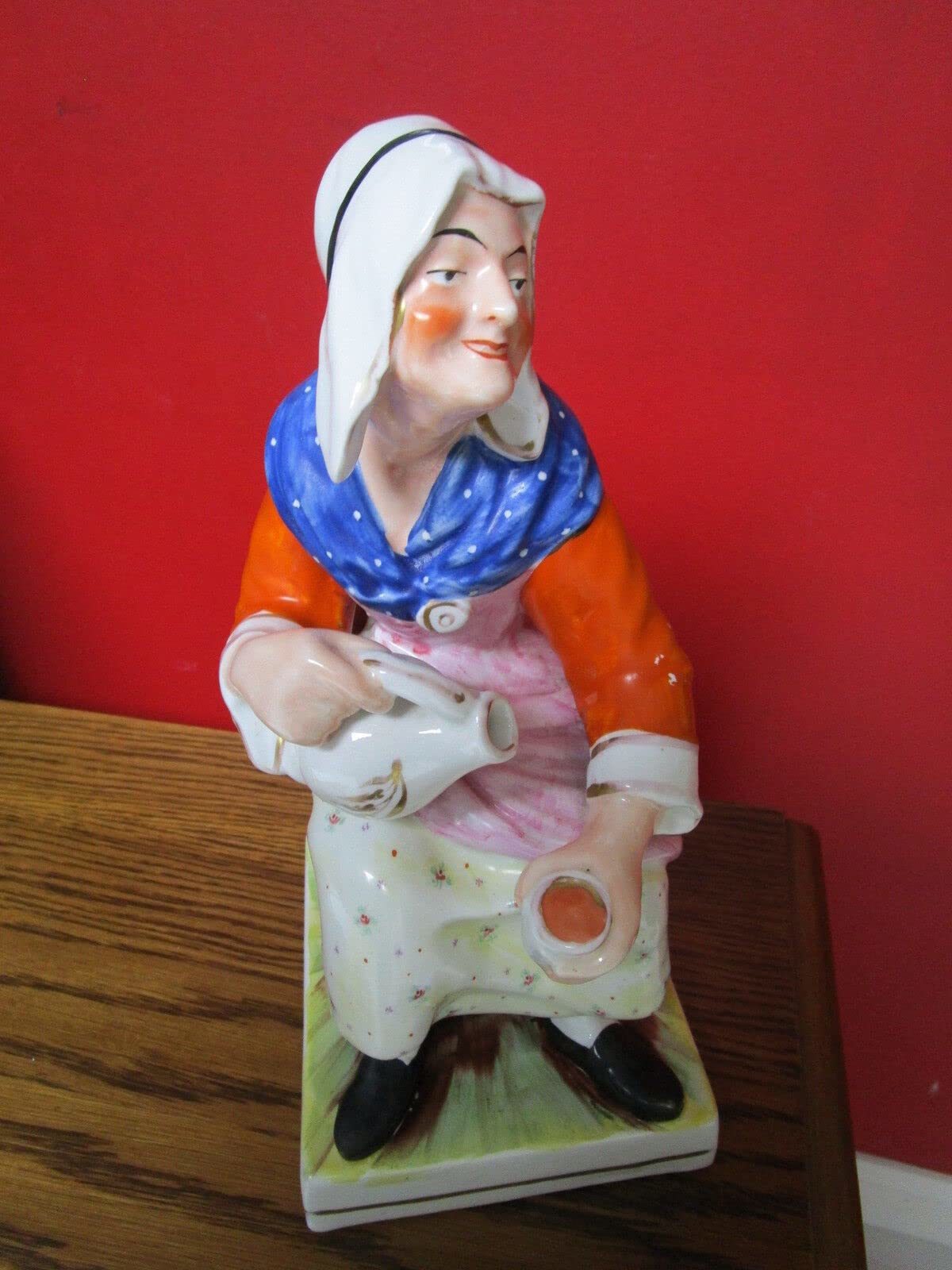 Antique StafFits Fordshite England sculpture figurine of a lady pourring tea on cup
