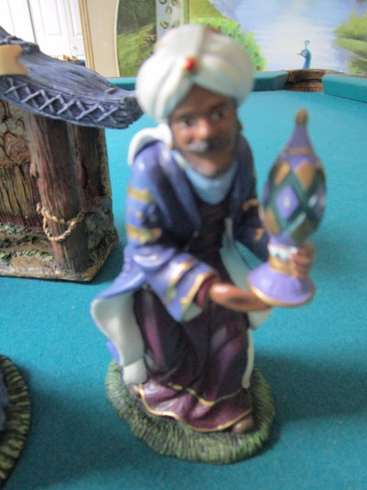 THOMAS KINKADE NATIVITY SET 6 PCS NIB, MANGER, MARY, JOSEPH, BABY AND 2 KINGS, BABY IS AROUND 2" ALL THE OTHER FIGURES BETWEEN 4/12 TO 5 1/2" (KINGS) MANGER IS 6 1/2 X 8 1/2 X 3", [A4RACK12A] About Us About Us Payment Terms Returns About Us