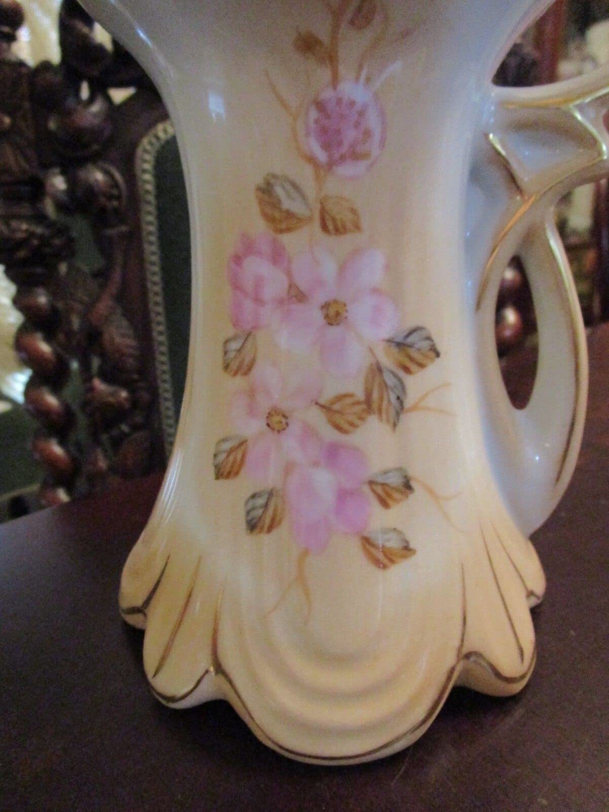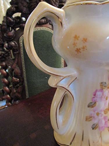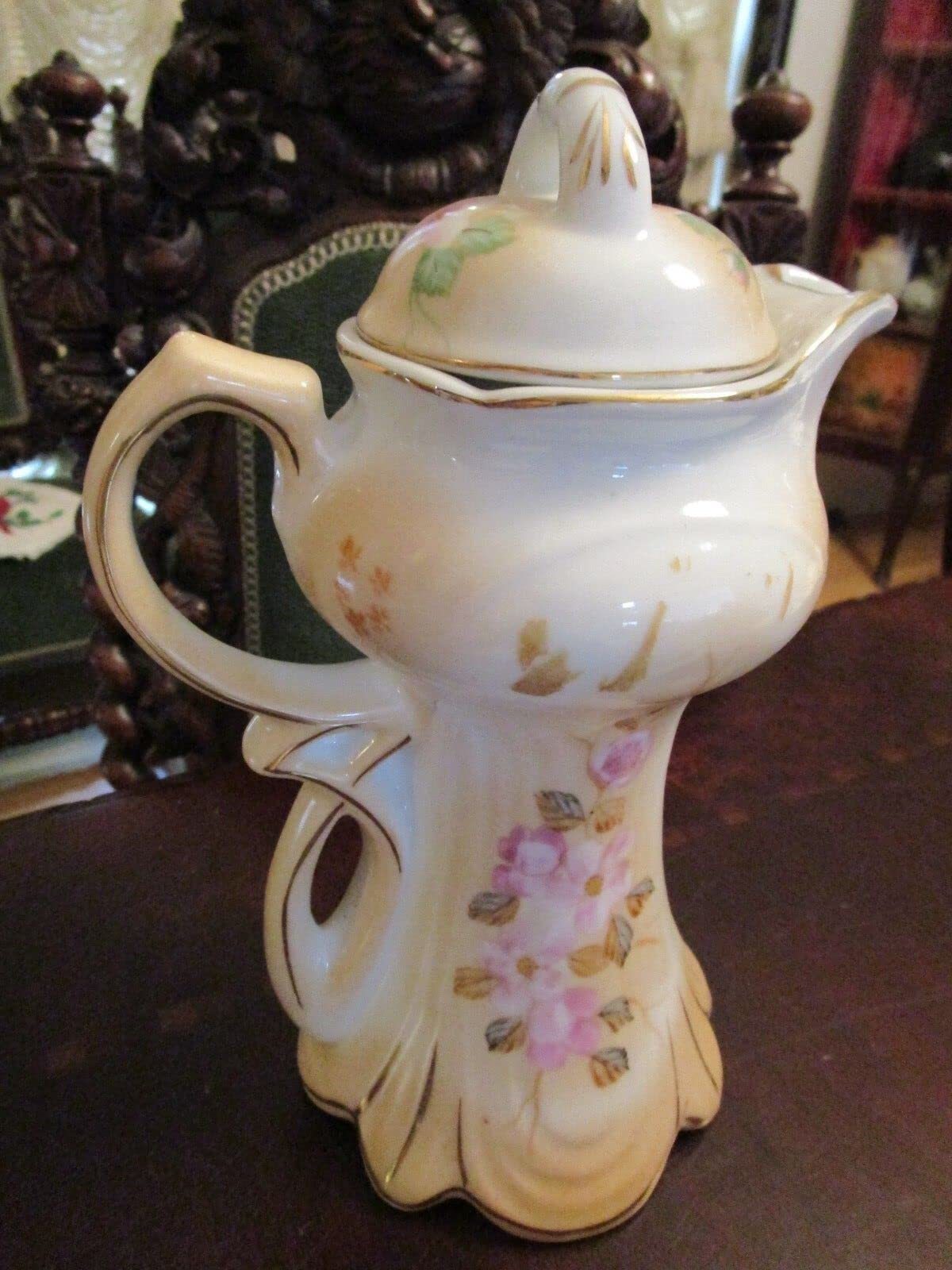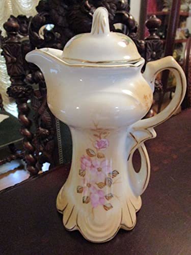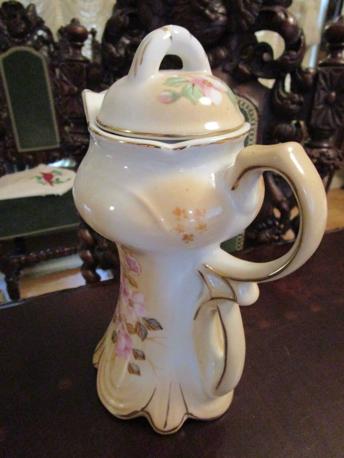 CHINESE TEAPOT VICTORIAN STYLE PINK FLOWERS AND GOLD 10" TALL