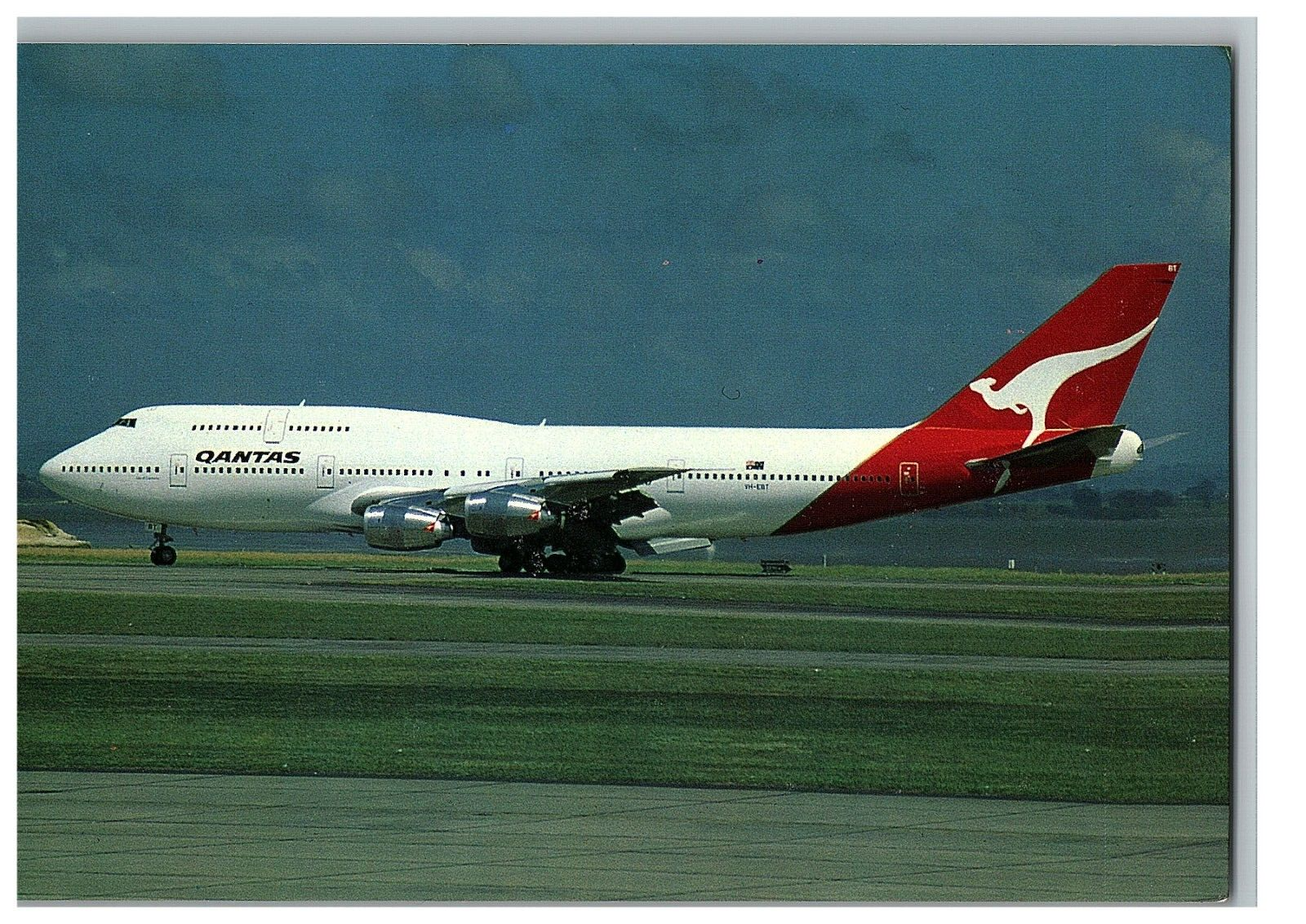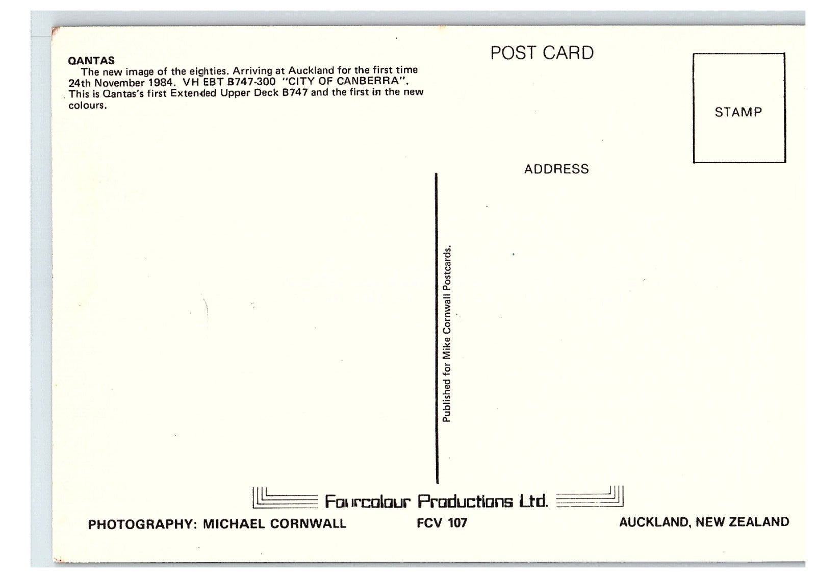 Qantas Extended Upper Deck B747 at Auckland Airplane Postcard