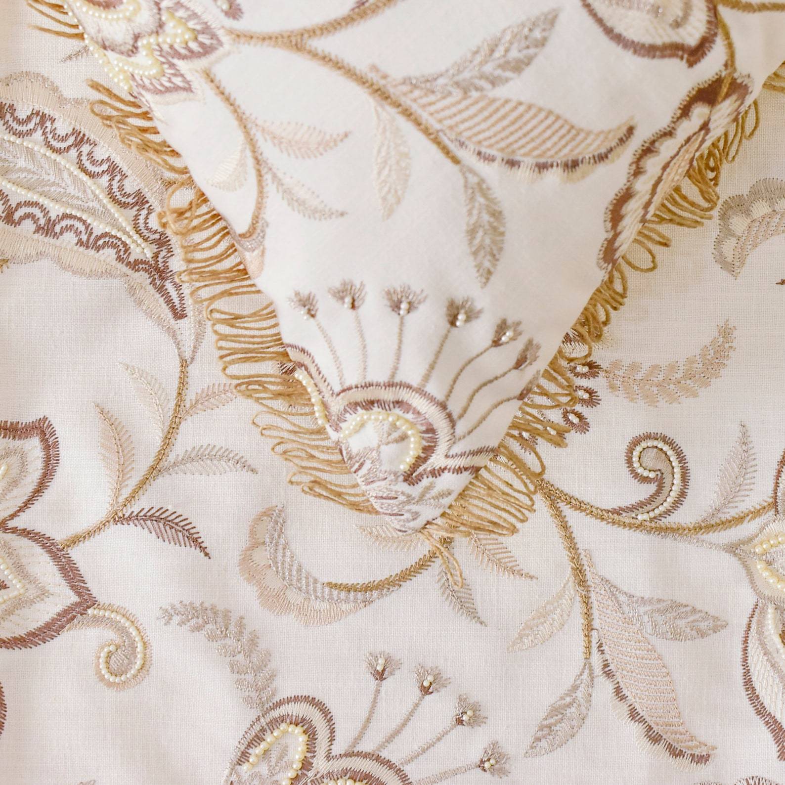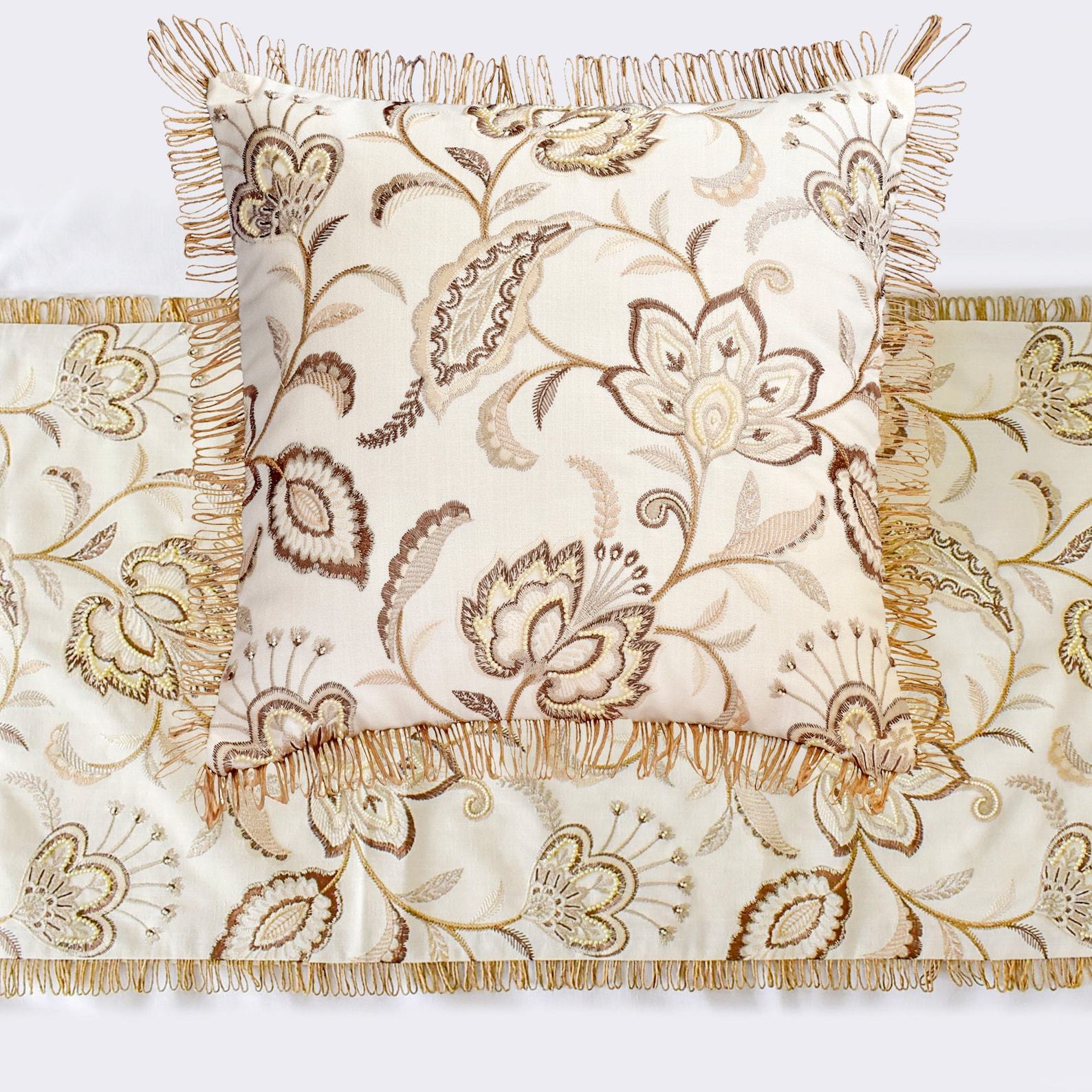 Floral Luster - Cotton Beige Decorative Bed Runner and Pillow Cover