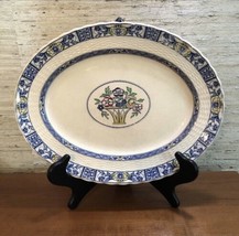 ATQ Porcelain Platter Oval Serving Dish Minton Ramsey Blue; Flower Basket 13”W