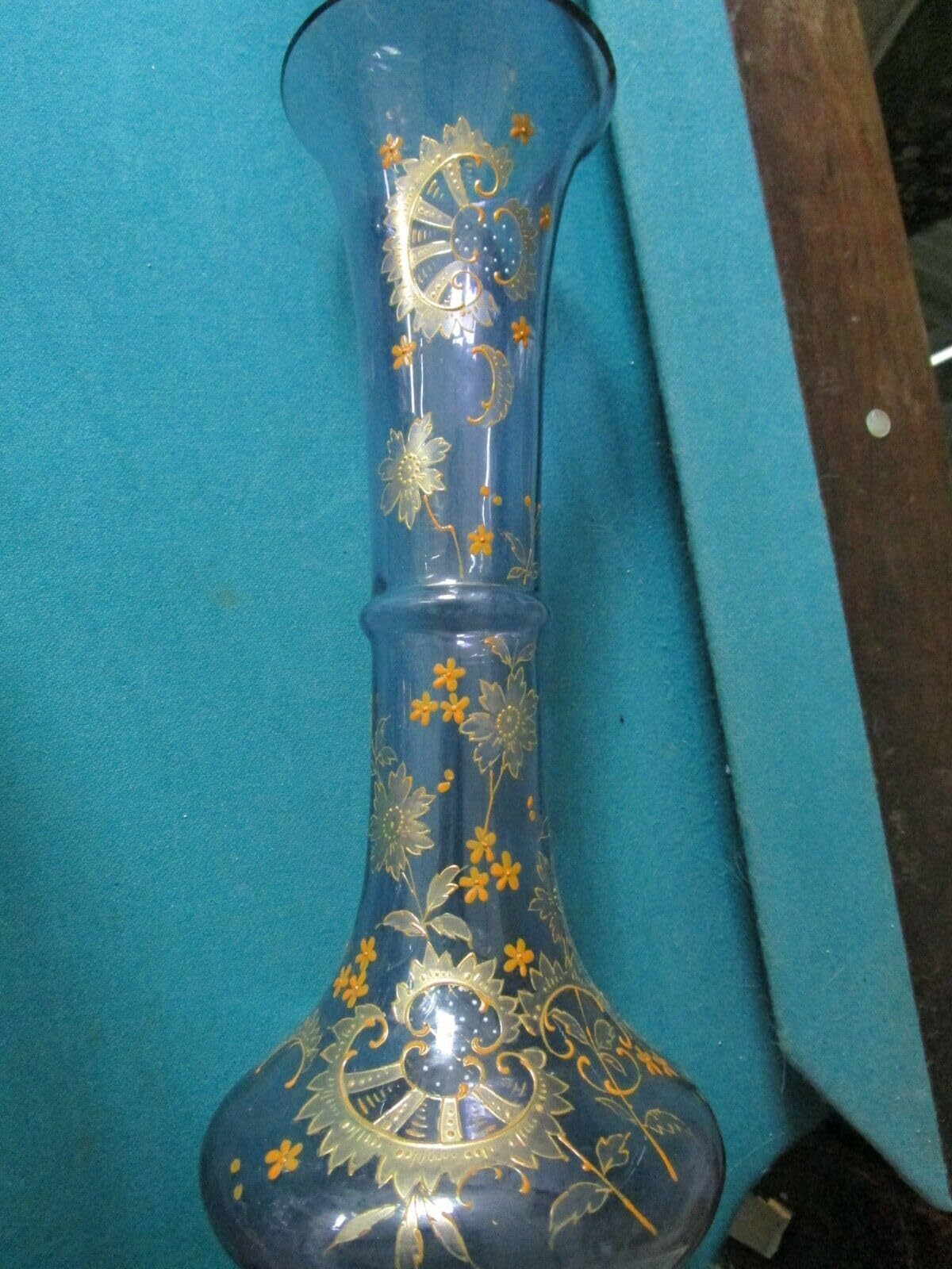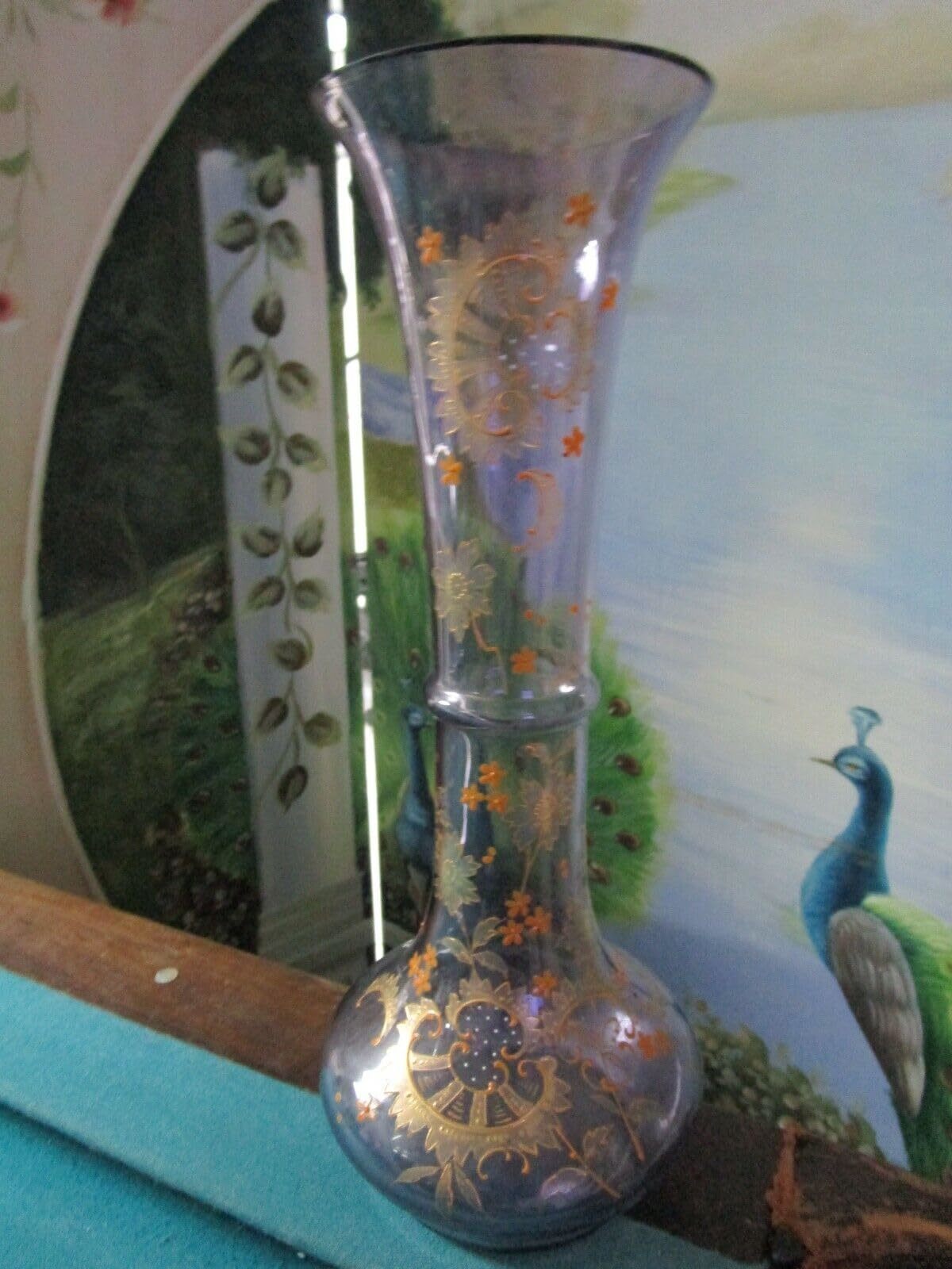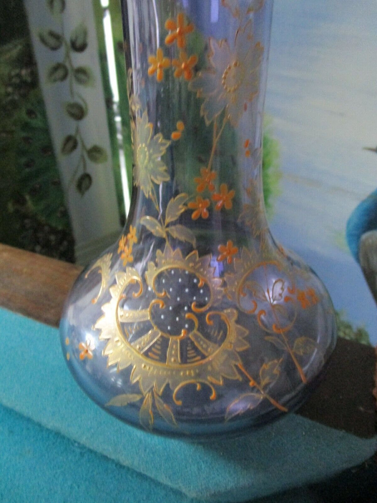 Czech Bohemian Hand Painted Fluted VASE Purple Glass 14" |