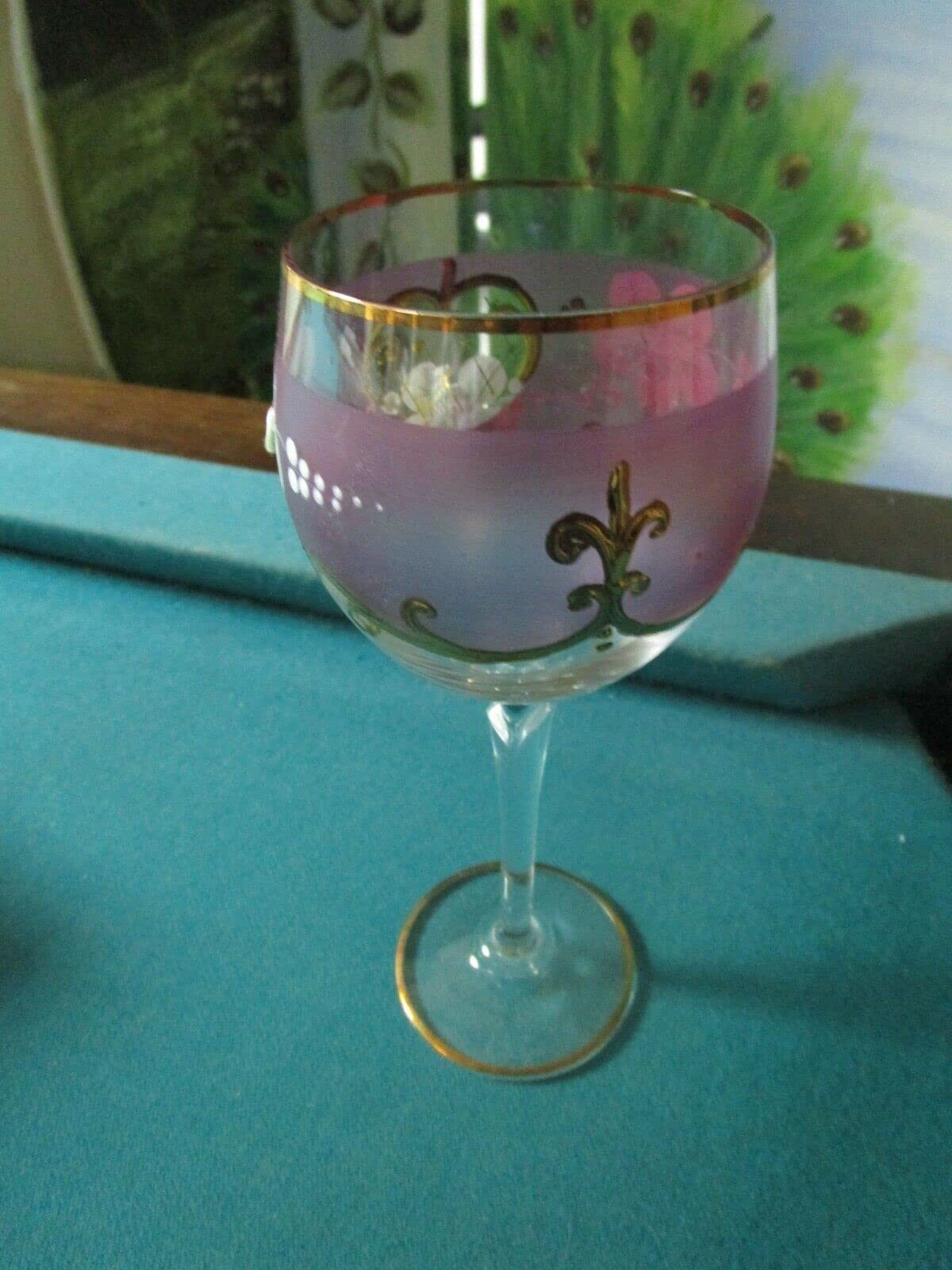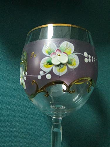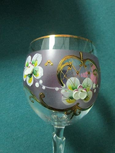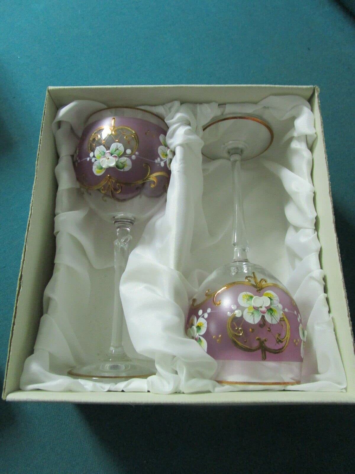 BOHEMIAN CRYSTAL 2 GOBLETS HANDPAINTED PINK PURPLE APPLIED FLOWERS 7 1/2", IN SILK BOX[A4RACK5] About Us About Us Payment Terms Returns About Us