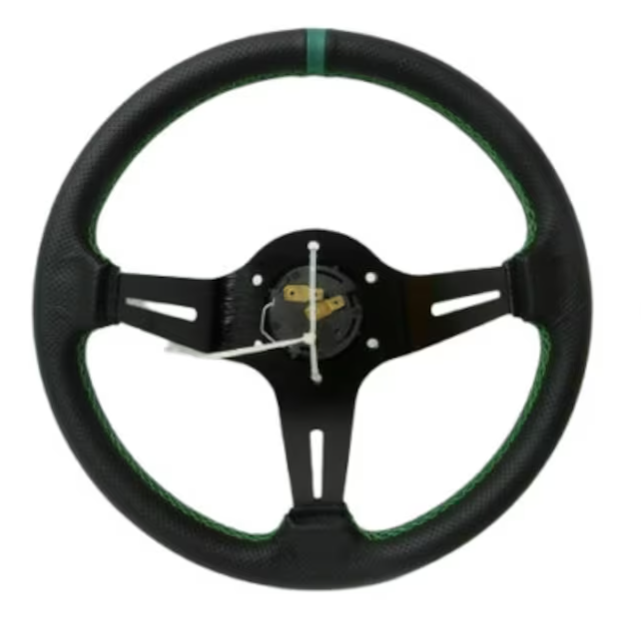 Steering Wheel 3 Spoke Racing Style Leather Green Stitching Horn Button 14