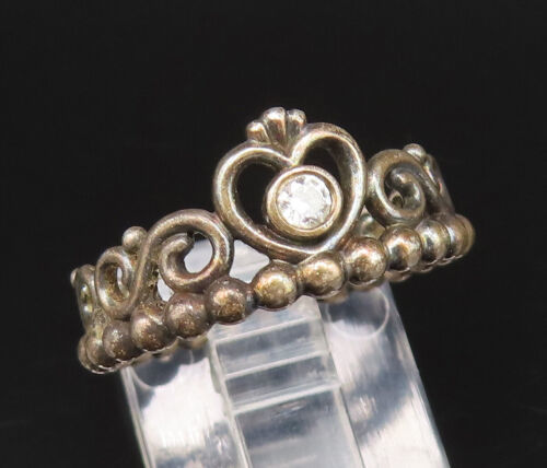 PANDORA 925 Silver - Vintage Cubic Zirconia Princess Tiara Ring Sz 6 - RG25764
