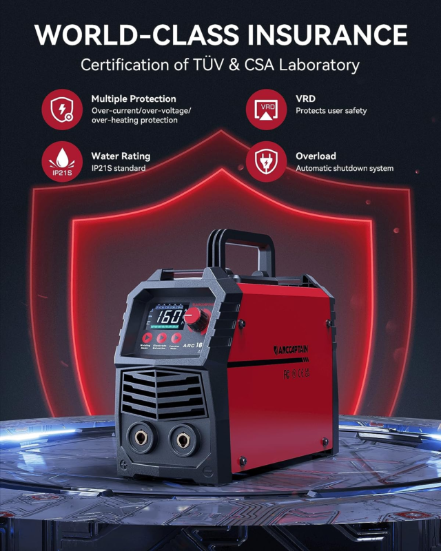 ?SAFETY DURABLE? ARCCAPTAIN welder machine have passed a variety of professional tests and certifications including TรV and ANSI standards before leaving our factory. We provide 30-Day Money Back Guarantee and 2-Years Warranty for you. We take care of our customer?s safety based on over current/ over voltage/ over current/ overload/ overheating protection functions.