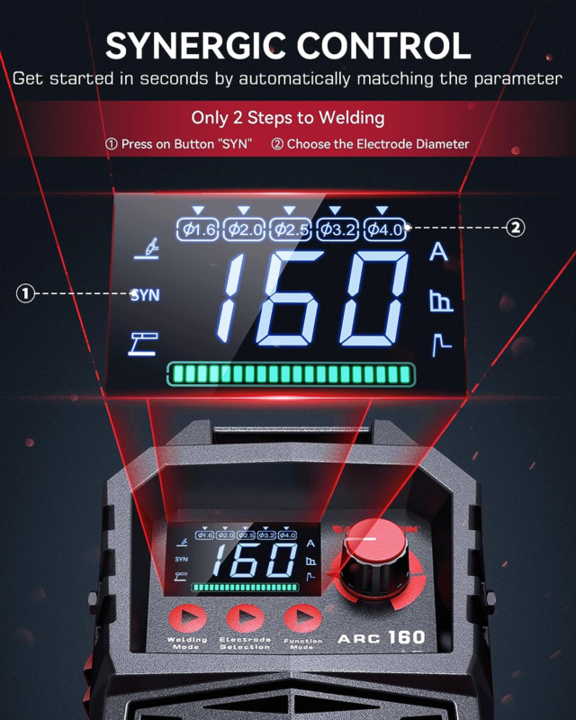 110V/220V Stick Welder,160Amp ARC Welding Machine with Synergic Control, IGBT I