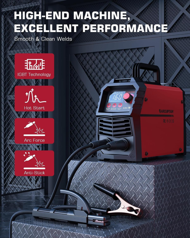ARCCAPTAIN Welding Machine, your gateway to exceptional welding! Intuitive LED display, effortless 2-step control, ultra-lightweight at 5.84 lbs for easy portability. Versatile welding support ensures safety and precision.