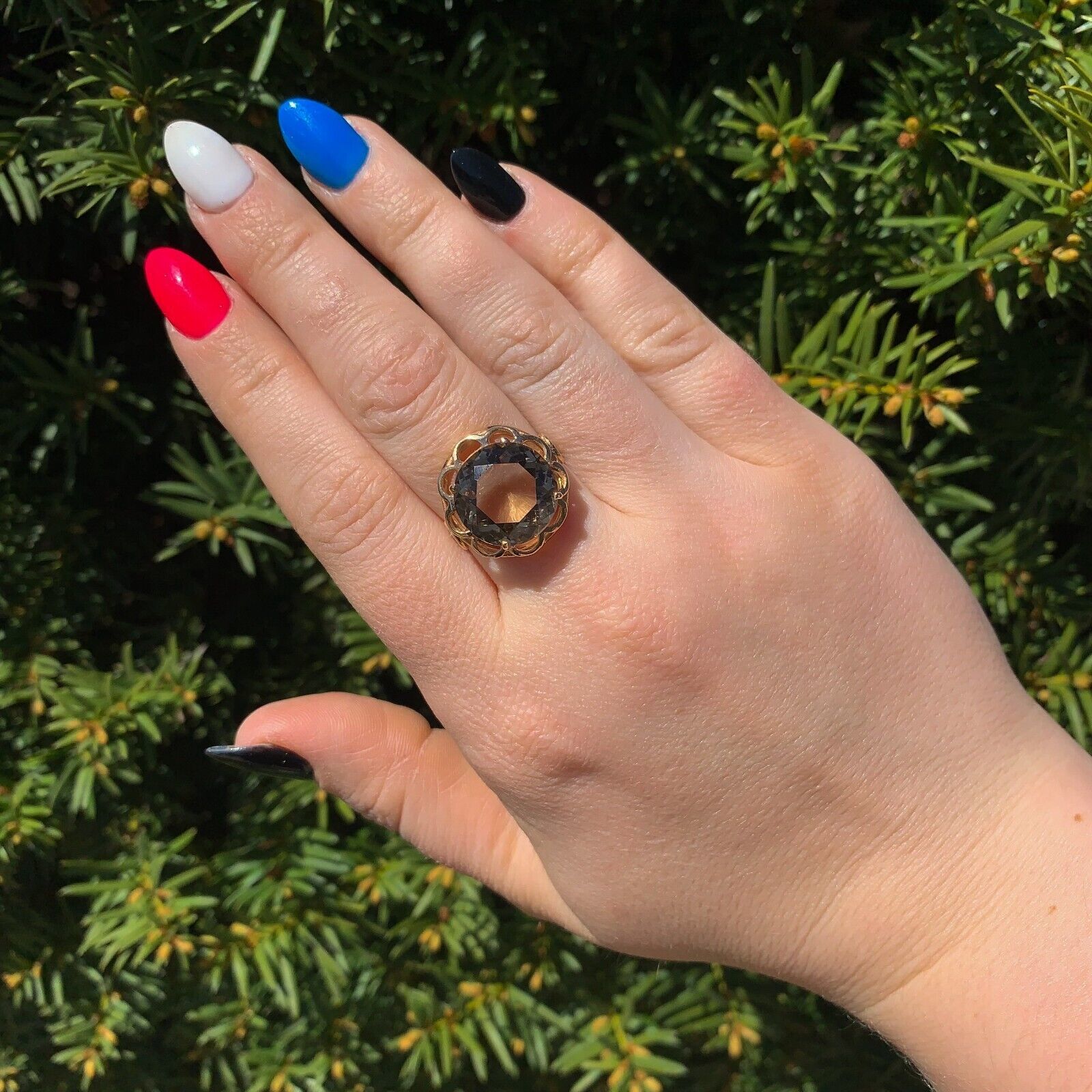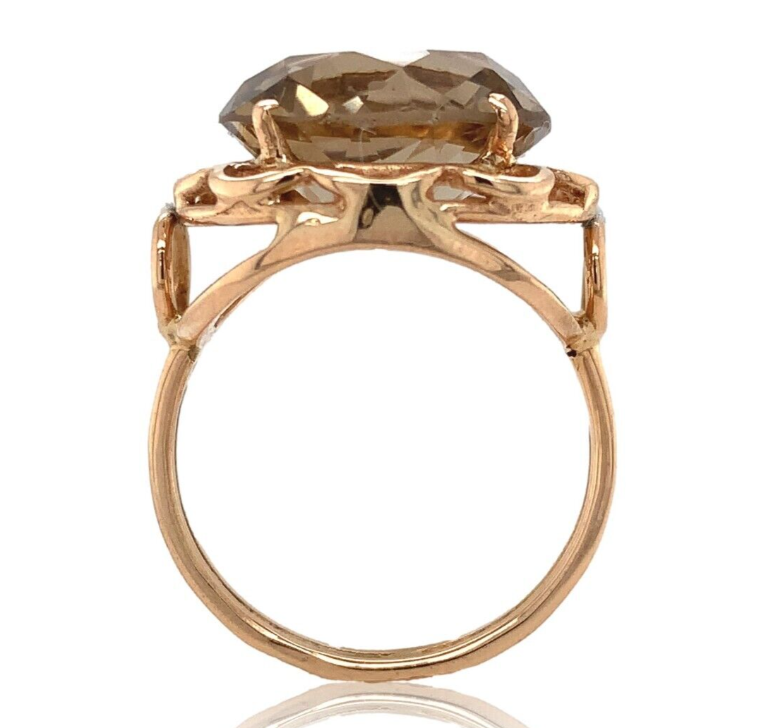 18k and 14k Rose Gold Handwrought Genuine Natural Smoky Quartz Ring (#J6605)