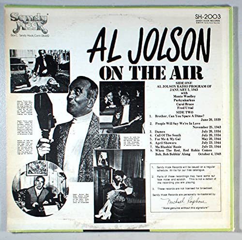 Al Jolson On The Air VINYL LP – Sandy Hook – SH -2003 |