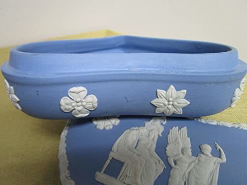 Wedgewood Blue Jasperware heart shaped, classic decoration in white, trinket/vanity dresser, very good condition, some light surface scratches commensurate with age, 2 H x 5 x 3 1/2 [91basktrack5] About Us About Us Payment Terms Returns About Us