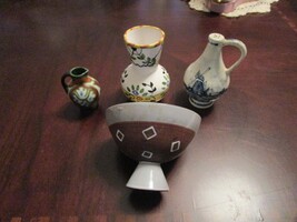POTTERY HOLLAND AND PORTUGAL 5 PCS SALE 10 $ EACH FOOTED BOWL MARKED HOLLAND 4 X 4, BLUE DELFT SMALL JAR 4", MULTICOLOR VASE FROM PORTUGAL SIGNED ESMERALDA 4", SMALL GOUDA PITCHER 3" , VERY GOOD CONDITION, SOME LIGHT SURFACE SCRATCHES COMMENSURATE WITH AGE [REDSCHUMANNBSKT] About Us About Us Payment Terms Returns About Us