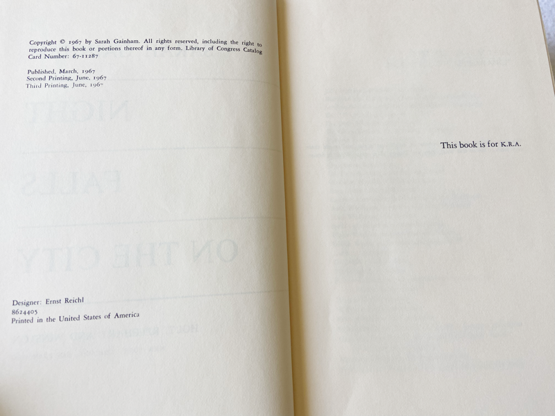 1967 HC Collectible Sarah Gainham NIGHT FALLS ON THE CITY First US edition 196..