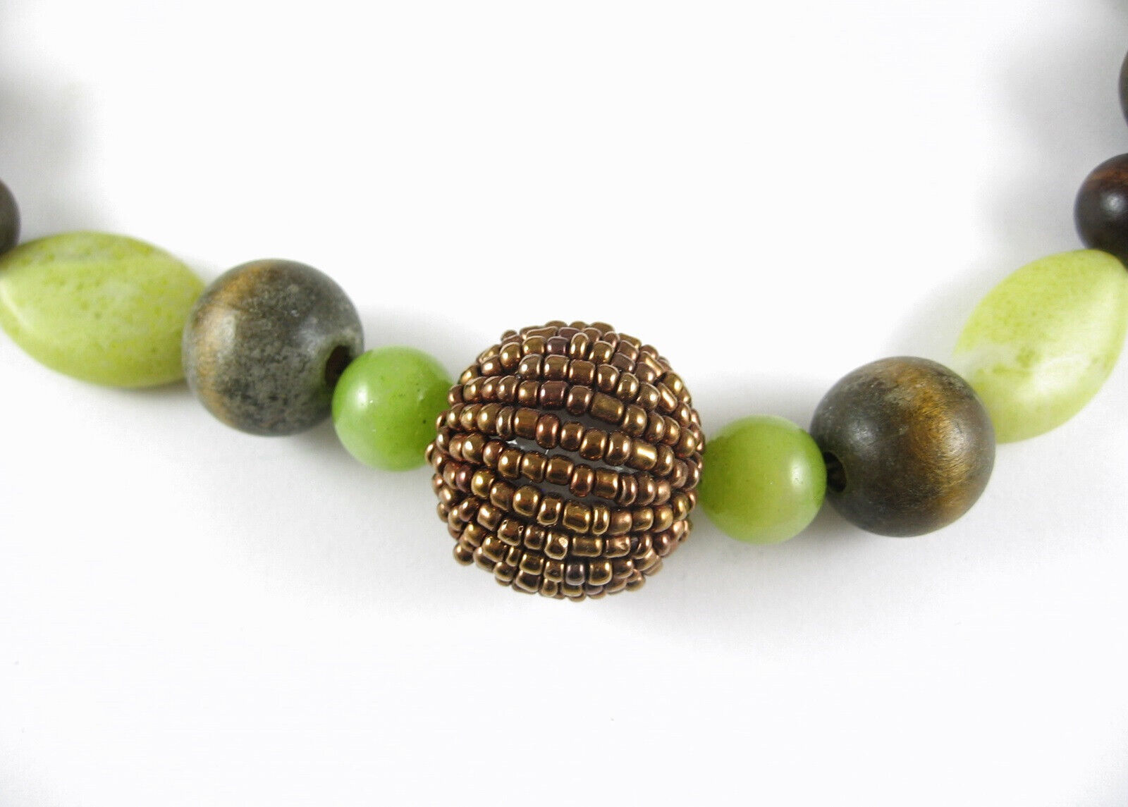 Coldwater Creek YELLOW JASPER JADE Beaded Vintage NECKLACE Wood Glass Seed Bead added to cart.
