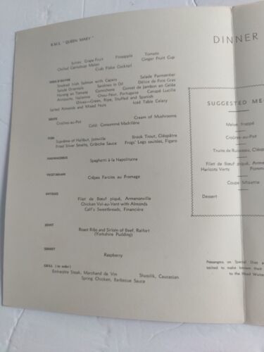 R.M.S Queen Mary Dinner Menu - Cunard - and 50 similar items