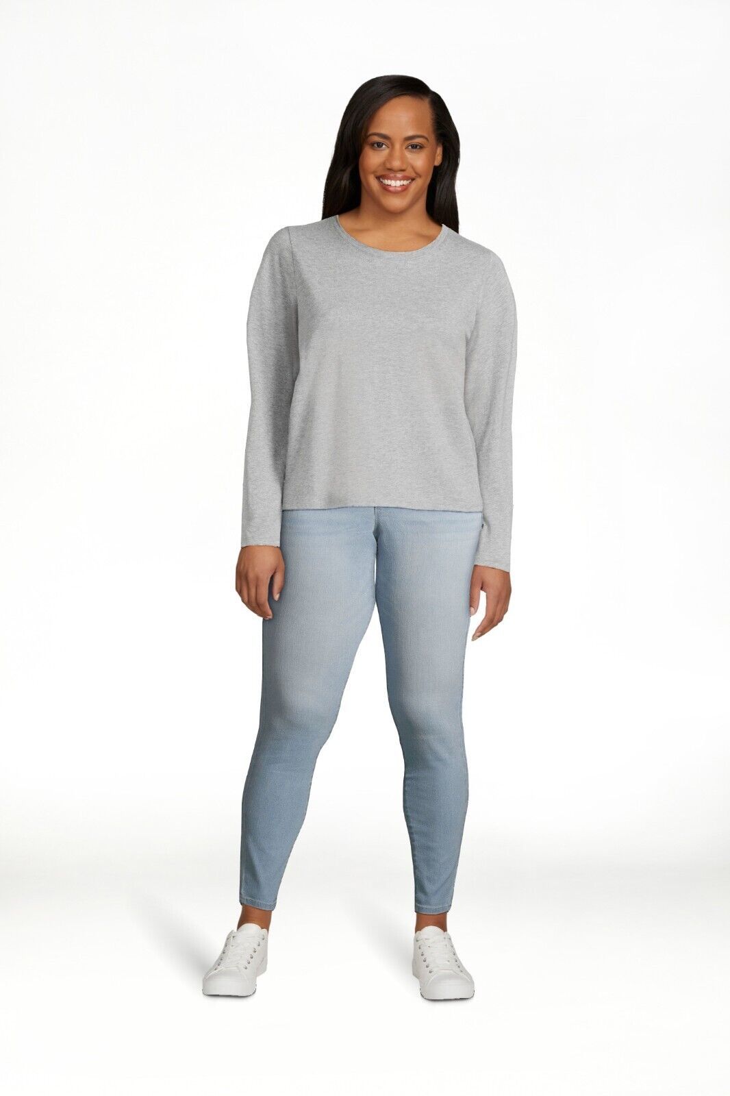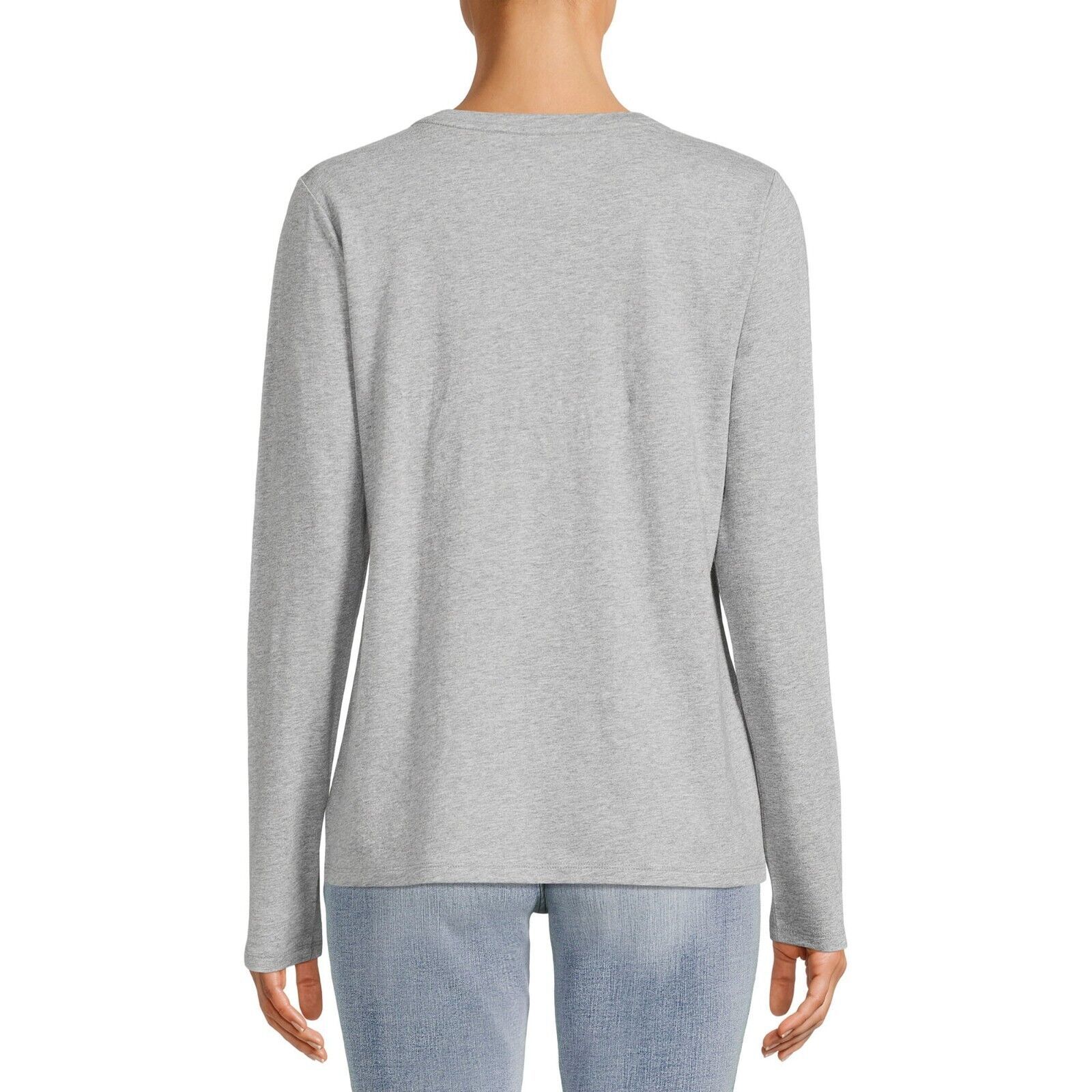 Time And Tru Women's Crewneck Tee with Long Sleeves, Gray Size L(12-14)