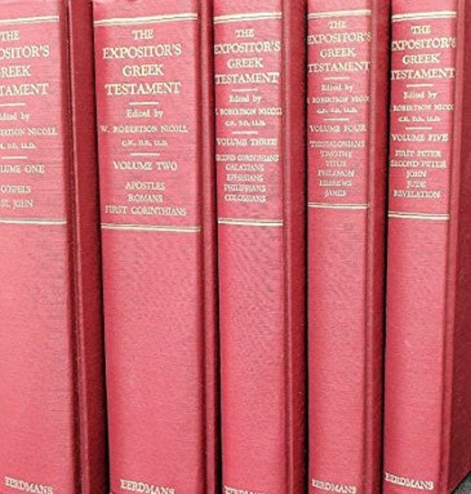 This set of 5 volumes of The Expositors Greek New Testament is a must-have for any serious student of the Bible. Written by Maurice Nicoll, this commentary provides a detailed and insightful analysis of the Greek New Testament. The books are in excellent shape and will make a great addition to your library.