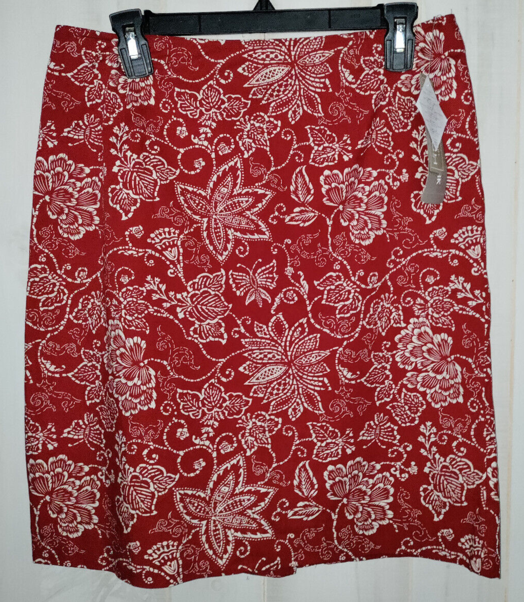 NWT WOMENS $59 JONES NEW YORK SPORT STRETCH RED W/ FLORAL PRINT SKIRT SIZE 10