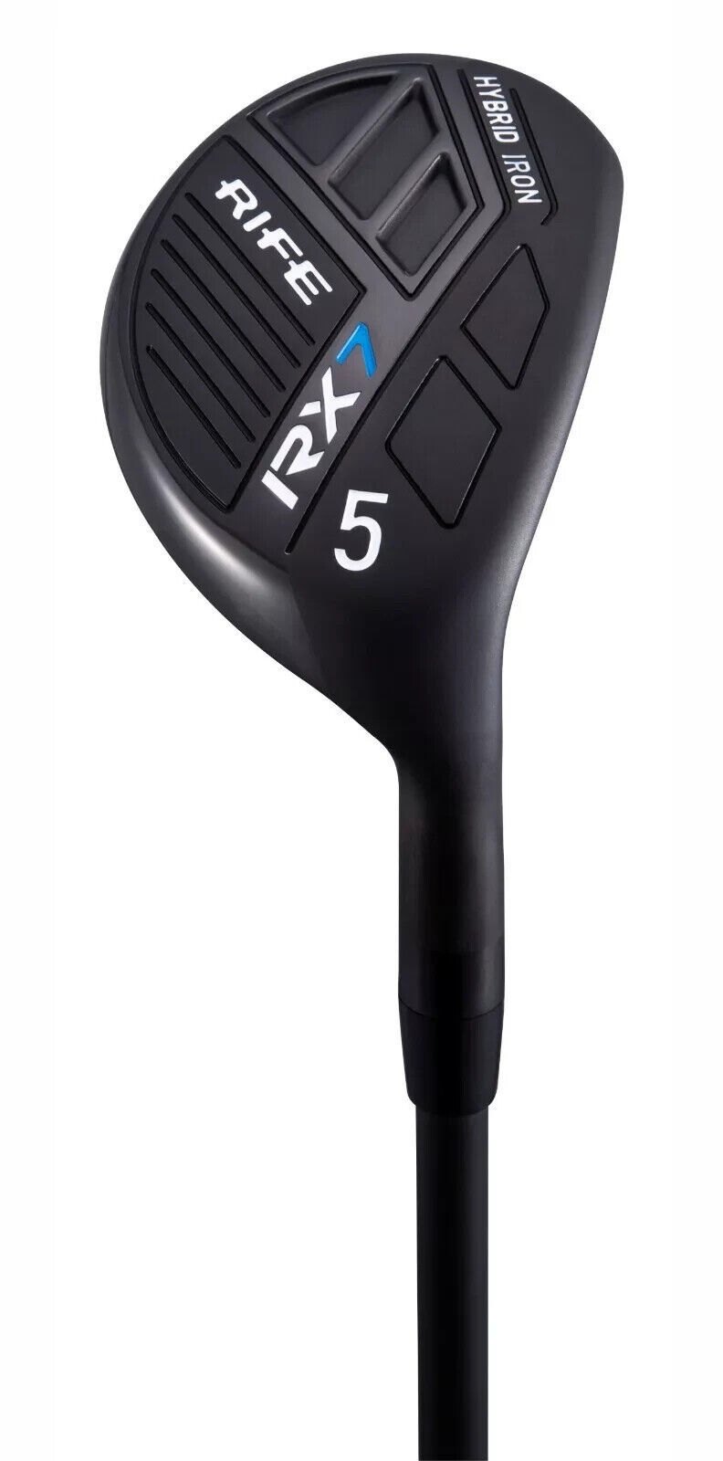 Rife RX7 All True Hybrid Utility Irons offer benefits like increased forgiveness, easier launch, and better performance on off center shots. RX7 new engineered design combines elements of both irons and fairway woods, providing a larger clubhead with a lower center of gravity. This fusion results in improved playability, especially for golfers who struggle with traditional size irons. If you're having trouble with your current Irons and you're looking for a long term viable solution, Hybrid irons are known for helping players launch the ball higher and more consistently than traditional irons and also offers a more forgiving option for all the various lies on the course.