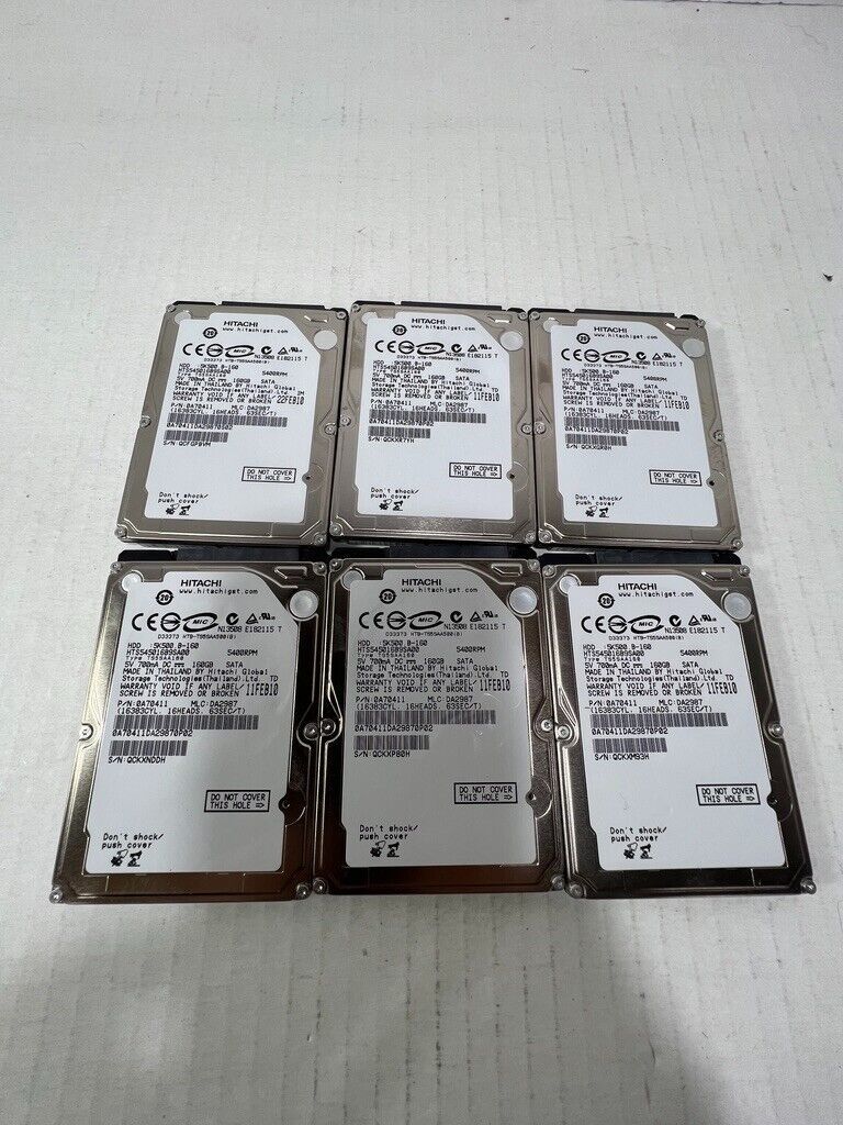 160GB 2.5" SATA II HTS545016B9SA00 Hitachi 9.5mm 5400RPM Hard Drive Lot 6 tested from a pet and smoke free home tested and working DOD wiped
