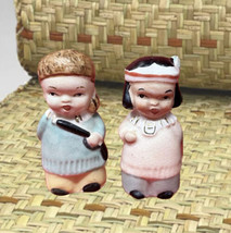 50s Holiday Salt Pepper Shaker Set Thanksgiving Couple Porcelain 3.25”H