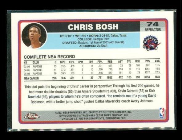 2006-07 Topps Chrome Refractor Chris Bosh #74 HOF Toronto Raptors Basketball