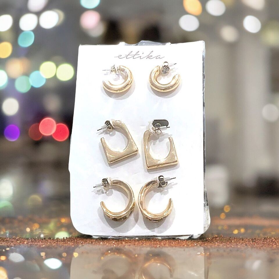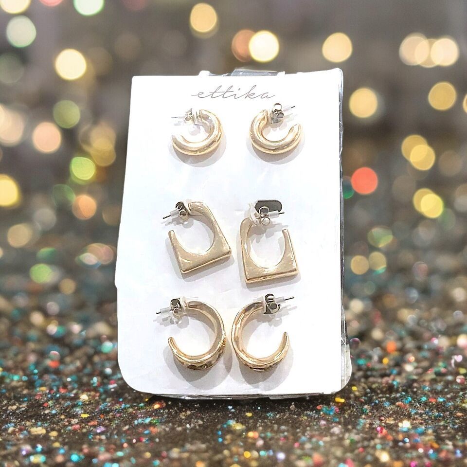 ETTIKA Gold Tone Hoop Earring Set Brand New With Tags