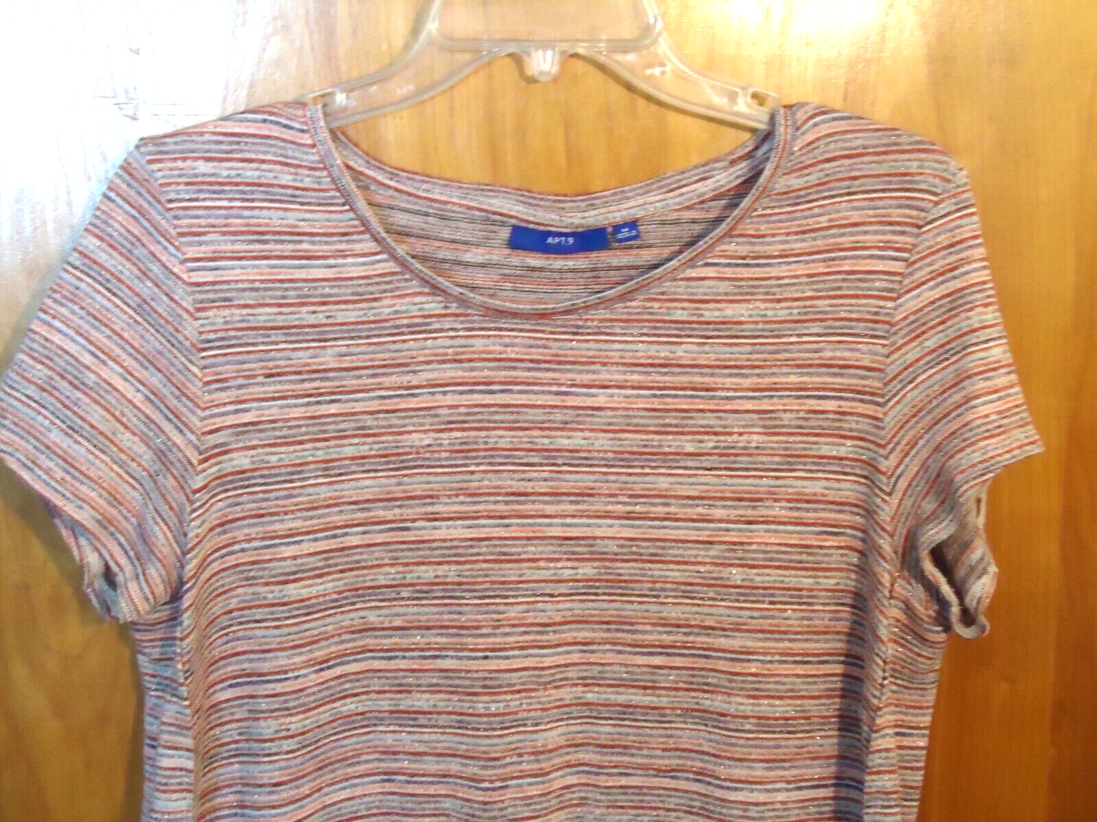 Here is a Apt.9 Size M Multi Color Short Sleeve Glitter ? Top " Beautiful Top ".If you have any concerns or questions about this item(s) please ask before bidding / purchasing this item(s).Thank You.-(CL14)